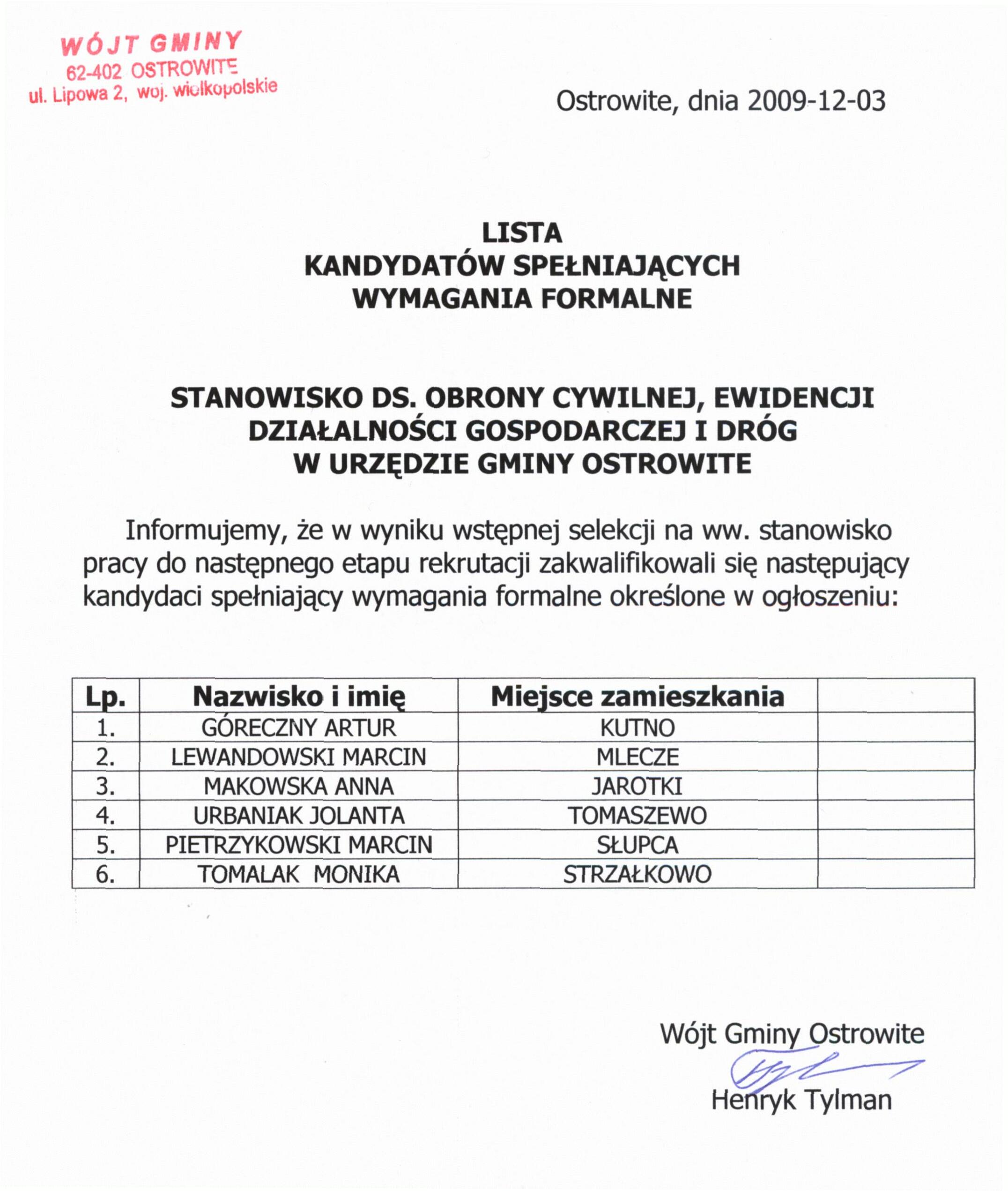 dotyczy stanowiska ds. obrony cywilnej, ewidencji dzia艂alno艣ci gospodarczej i dr贸g w Urz臋dzie Gminy Ostrowite